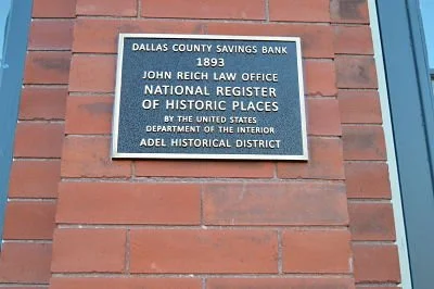 Past owners of the building are Orvil Reich Insurance and Real Estate, Robert Frush Law Office, and the John Reich Law Office. Adel Flowers & Gifts currently occupy the space.