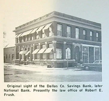 1893: Dallas County Savings Bank, J.W. Russell President; D.A. Blanchard Vice President, William Roberts, Cashier, George Messenger, Assistant Cashier