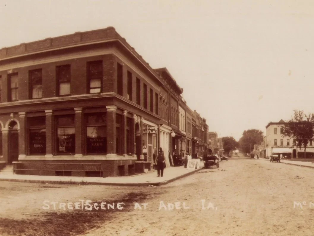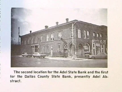 1882: Adel State Bank organized by S.M. Leach and occupied a fine two story brick building at the SW comer of the square
