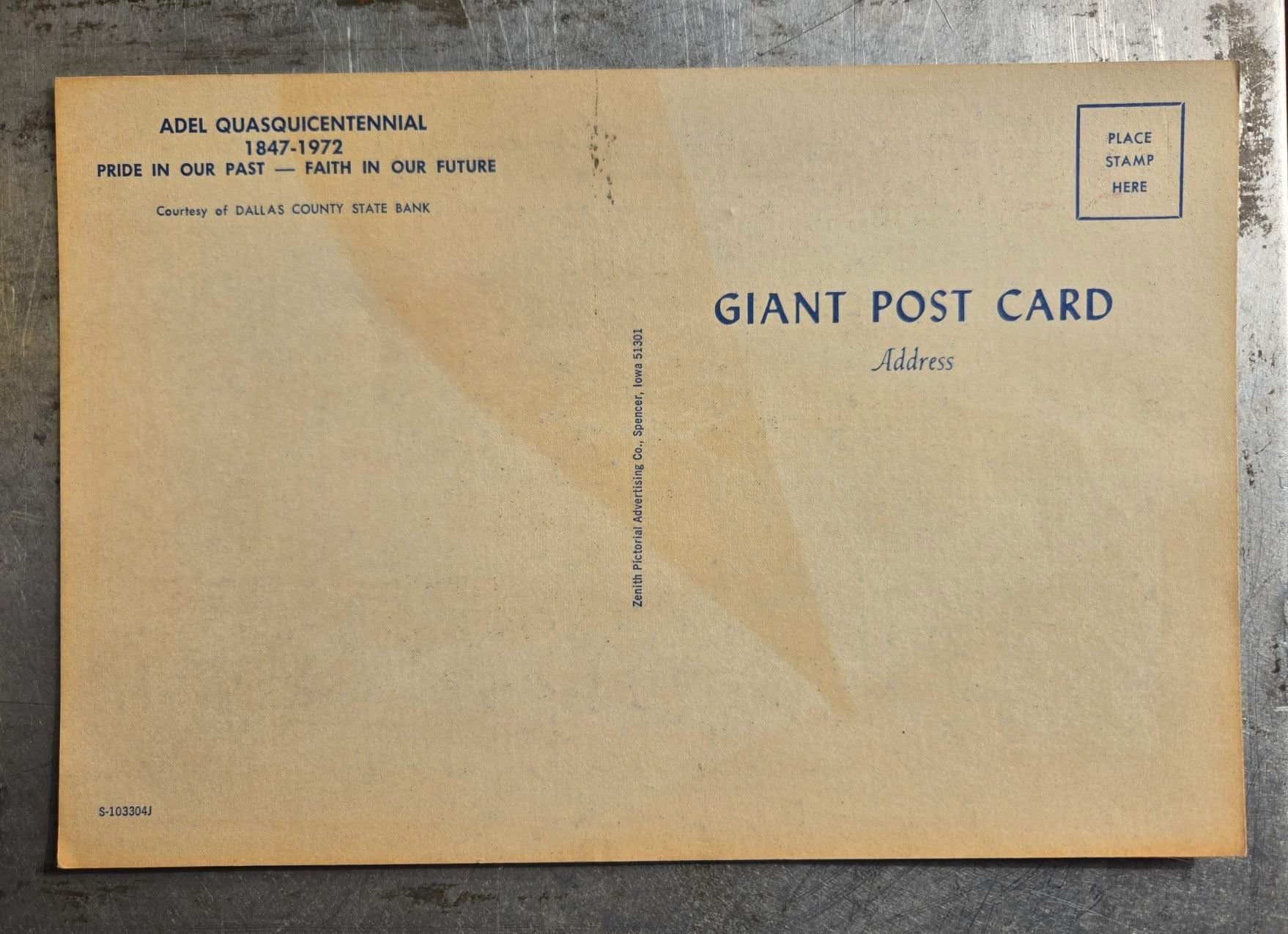 Postcard with ariel view taken for Adel’s 125th anniversary. Picture of postcards courtesy of Vintage Uptown Market.